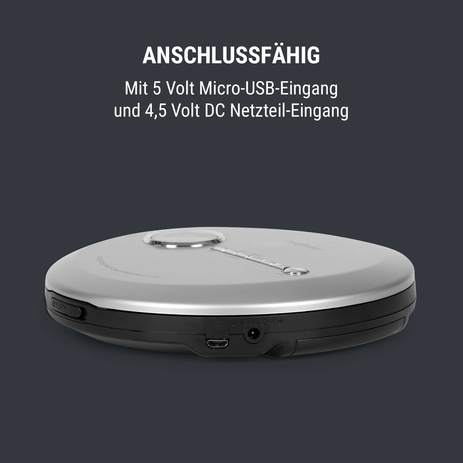 Die Rückkehr einer Legende: Mit dem oneConcept CDC 100 BT Discman kehrt die CD in den mobilen Gebrauch zurück – komplett mit modernster Technik! Er ist dank Bluetooth-Funktion in der Lage, im Handumdrehen eine Verbindung zu Wireless-Kopfhörern herzustellen und die Audio-Signale der Formate CD, CD-R, CD-RW und MP3-CD zuverlässig zu übertragen. Dank des Betriebs mit Batterien ist man jederzeit unabhängig von Stromquellen und kann bis zu 8 Stunden auch unterwegs Musik hören. Zuhause lässt er sich dann auf Wunsch auch problemlos mit einem Netzteil oder Micro-USB-Kabel betreiben, das jeweils einfach in die zugehörige Buchse eingestöpselt wird.