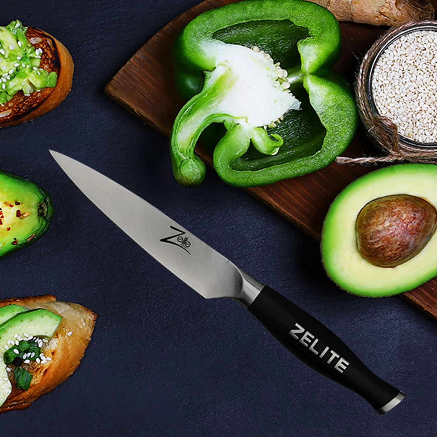 Das Zelite Infinity by Klarstein Comfort Pro 5″Allzweckmesser ist dabei besonders gut zum Schälen und Schneiden von Obst und Gemüse, zum Beispiel Zitrusfrüchten, geeignet, gleitet aber auch durch Fleisch und Käse wie durch Butter. Ergänze deine Küchenmesser oder nutze es als perfektes Geschenk für kochende Freunde.