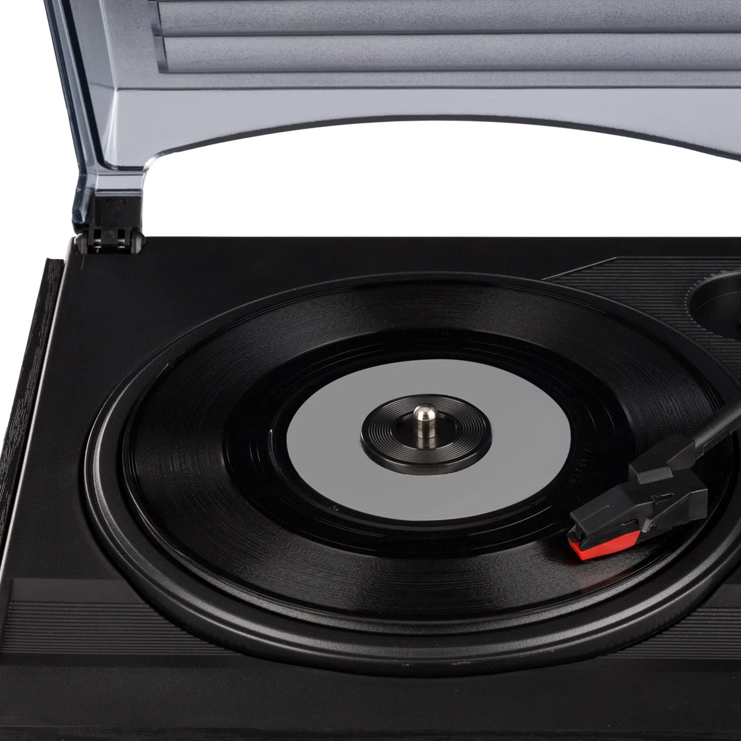 - inklusive Schallplattenadapter (Puck) zum Abspielen von Platten mit 38,1 mm Mittelloch