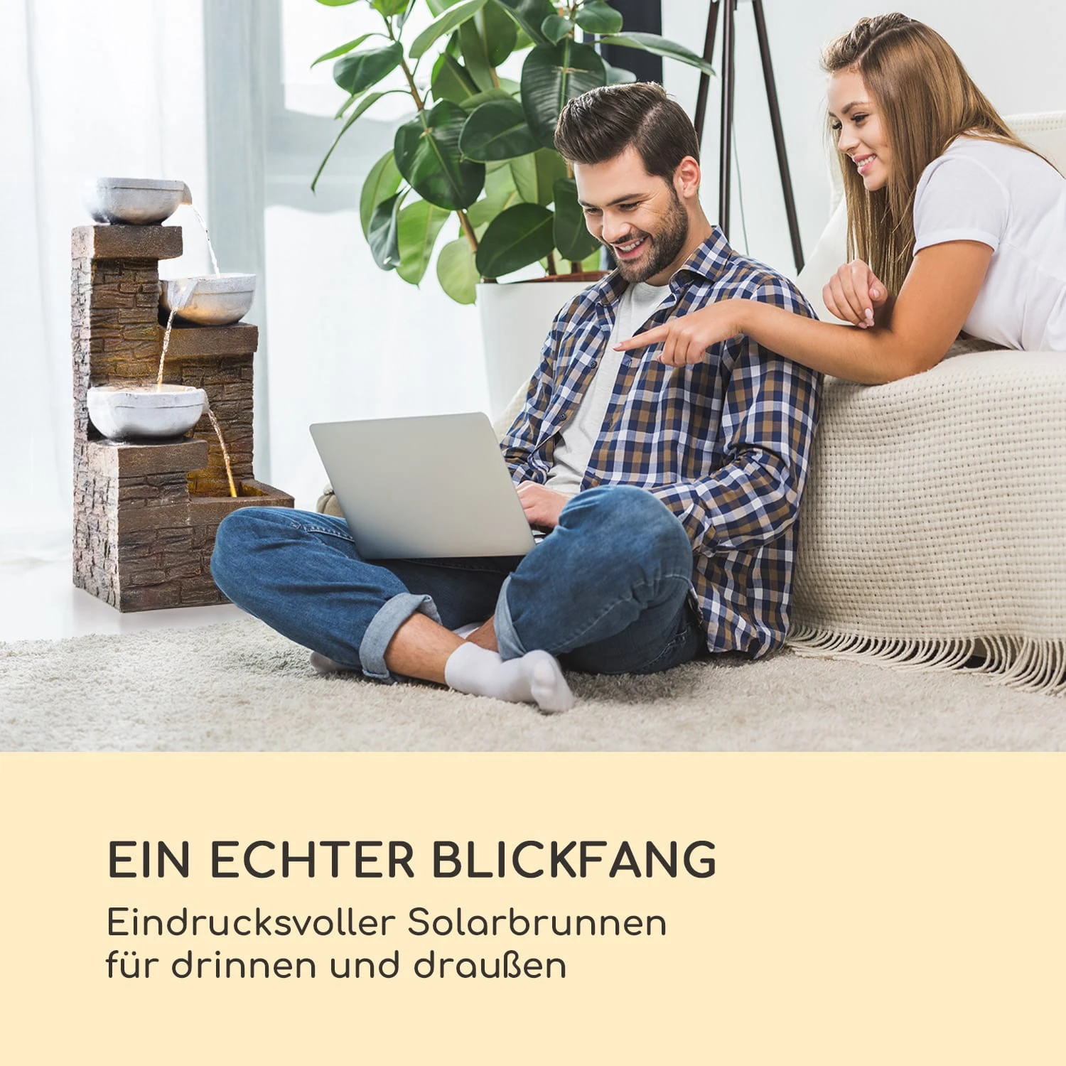 Der blumfeldt Fez Solar-Kaskadenbrunnen ist äußerst dekorativ und eine Zierde für jeden Garten, Balkon oder das Wohnzimmer. Mit der Kraft der Sonne lässt er das Wasser zwischen seinen drei Stufen fließen und hilft, die Welt mit seinem funkelnden Wasserspiel zu entschleunigen.