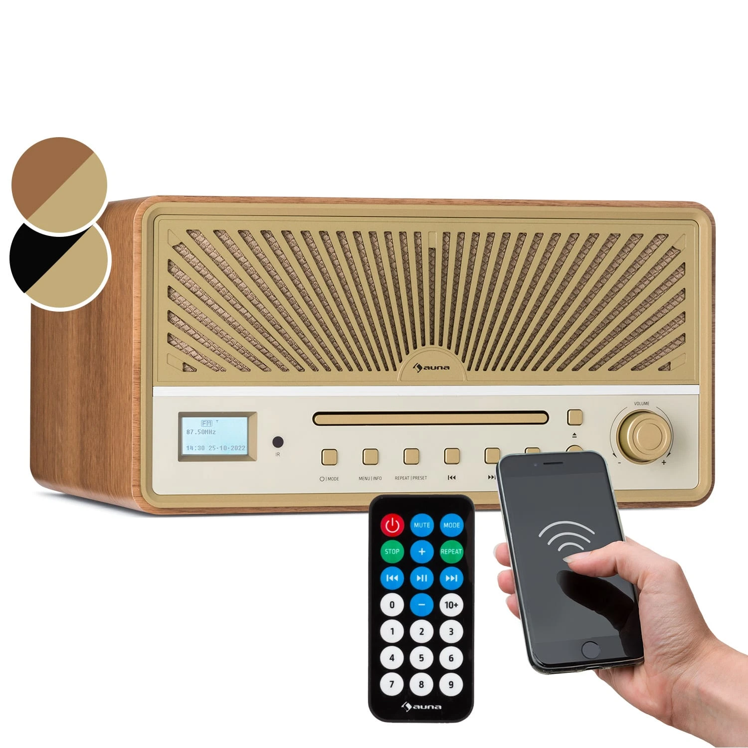 Lass zuhause oder in deinem Büro Musik in hoher Qualität erklingen: Ganz bequem kannst du das Glastonbury DAB CD-Radio von auna mit der kleinen Fernbedienung steuern oder per intuitivem Tastenfeld direkt am Gerät bedienen. Aktuelle Funktionen werden dir am dezenten Front-Display angezeigt und die integrierten Stereo-Lautsprecher verhelfen dem Radio zu einem klangstarken Kompaktdesign.