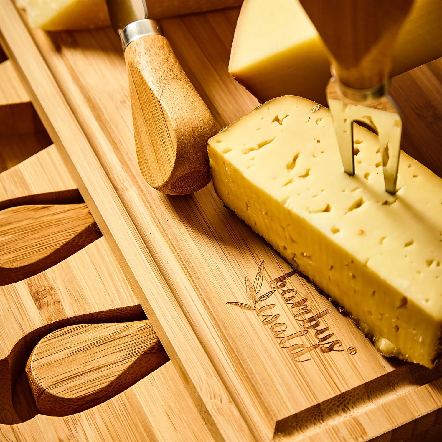 • Käsebrett aus Bambus mit Rille und Gleitschublade