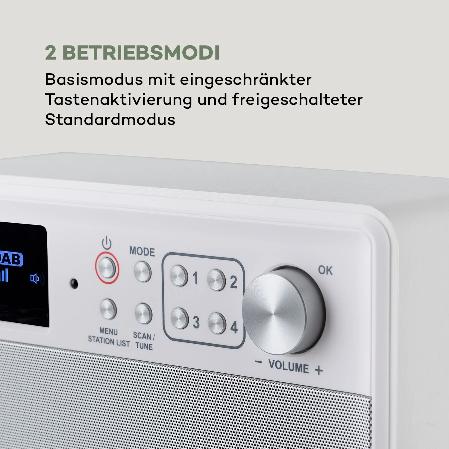 Fehlbedienung ausgeschlossen: Dank sehr gut lesbarer Schrift und zuverlässiger Tastensperre können auch Senioren und Kinder das auna Nestor DAB+ Radio problemlos und sicher bedienen.