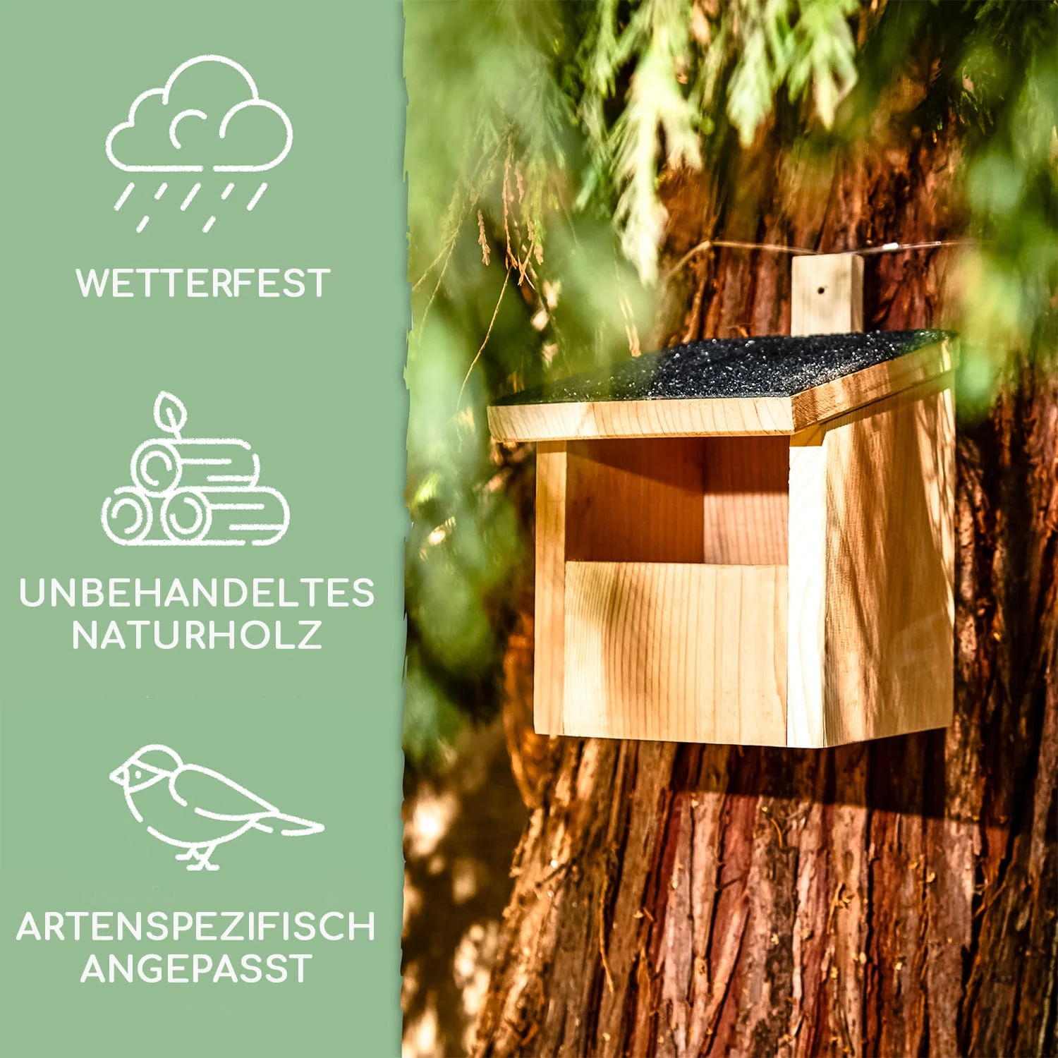 - Ganzjährig nutzbar: Für den Nestbau und die Jungtieraufzucht im Frühjahr/Sommer, als Unterschlupf und Übernachtungsquartier im Winter