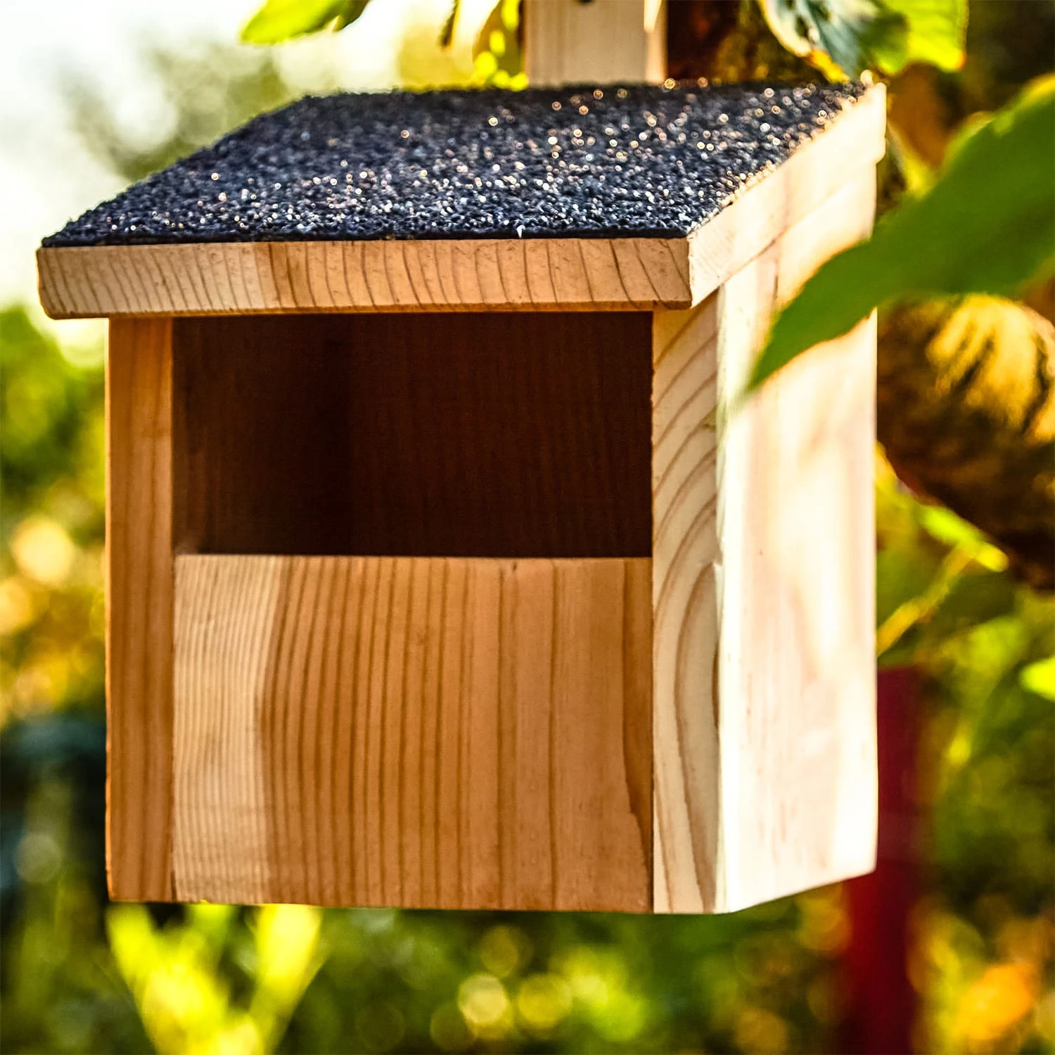 - Mit Aufhängevorrichtung und wetterfestem Asphaltdach
