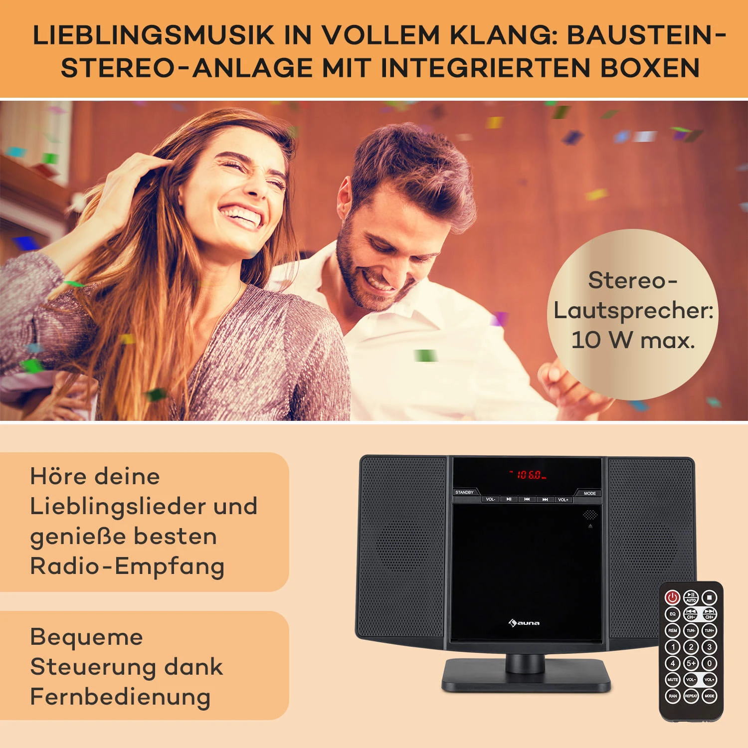 Die auna V14.2 Vertikal-Stereoanlage zeigt sich nicht nur funktional, sondern auch designtechnisch auf der Höhe der Zeit: Dank rückseitiger Befestigungspunkte bietet sie, neben der Nutzung als Standgerät, auch die Möglichkeit zur platzsparenden Wandmontage an. Eine mitgelieferte Fernbedienung ermöglicht die bequeme Steuerung aus der Distanz.