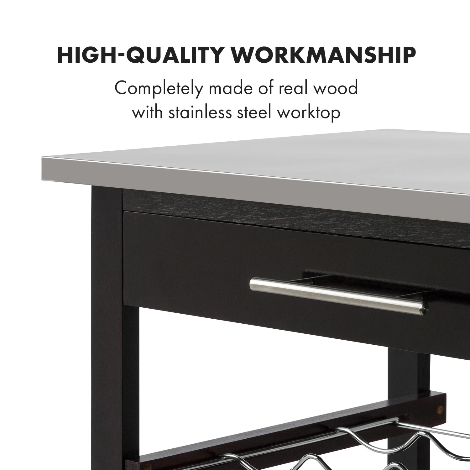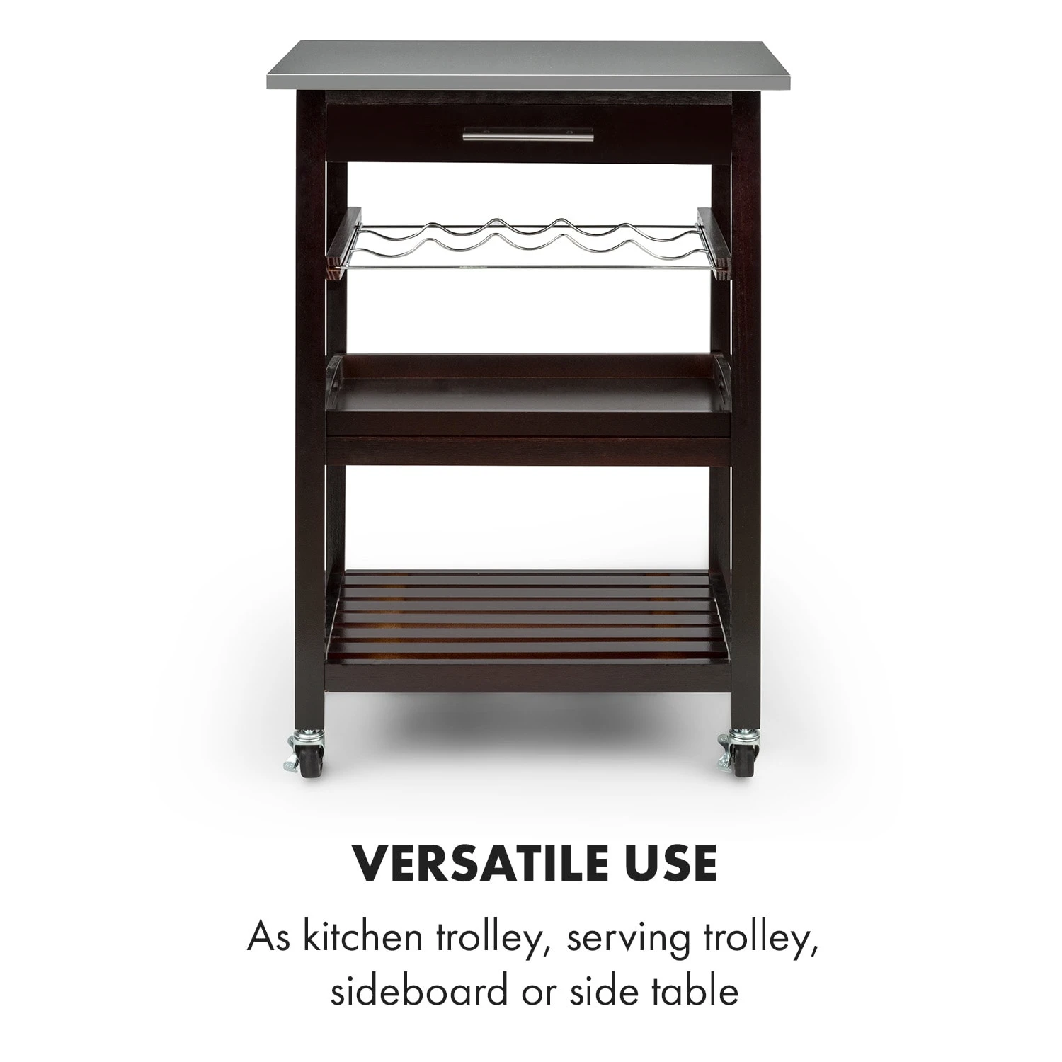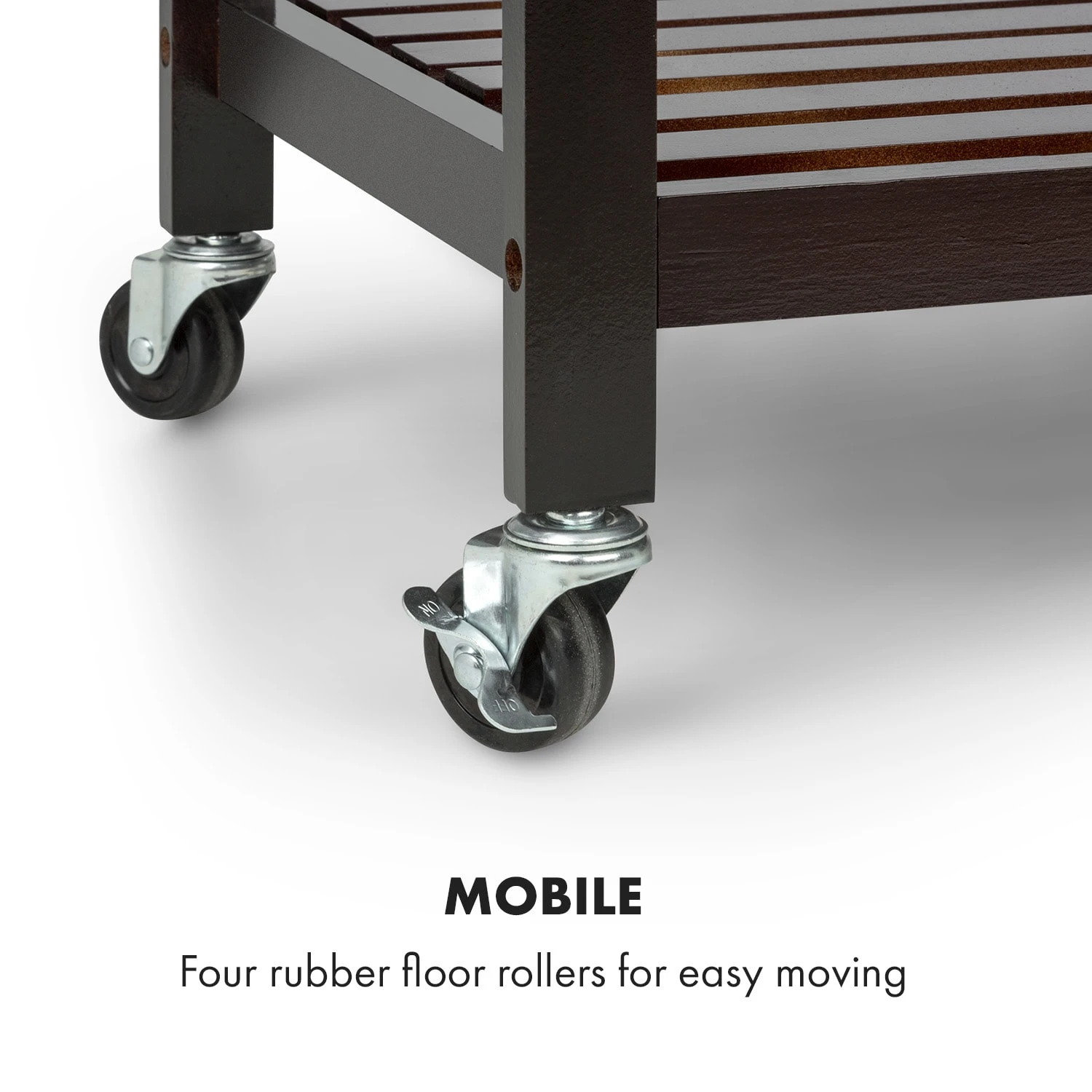 Edel und hochwertig: Der Klarstein Vermont Küchenwagen ist dein luxuriöser und servierfreudiger Küchenhelfer aus lasiertem Holz mit einem Top aus gebürstetem Edelstahl.