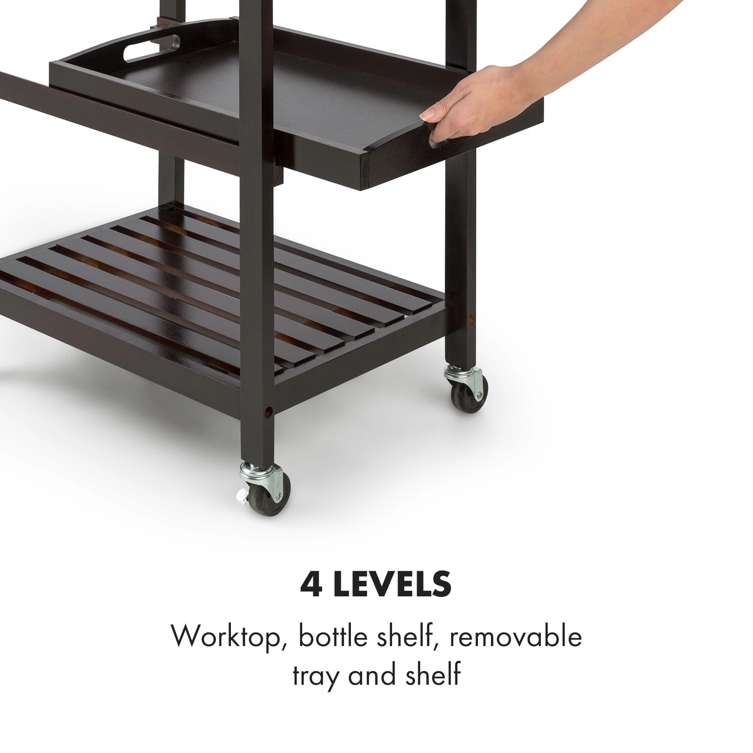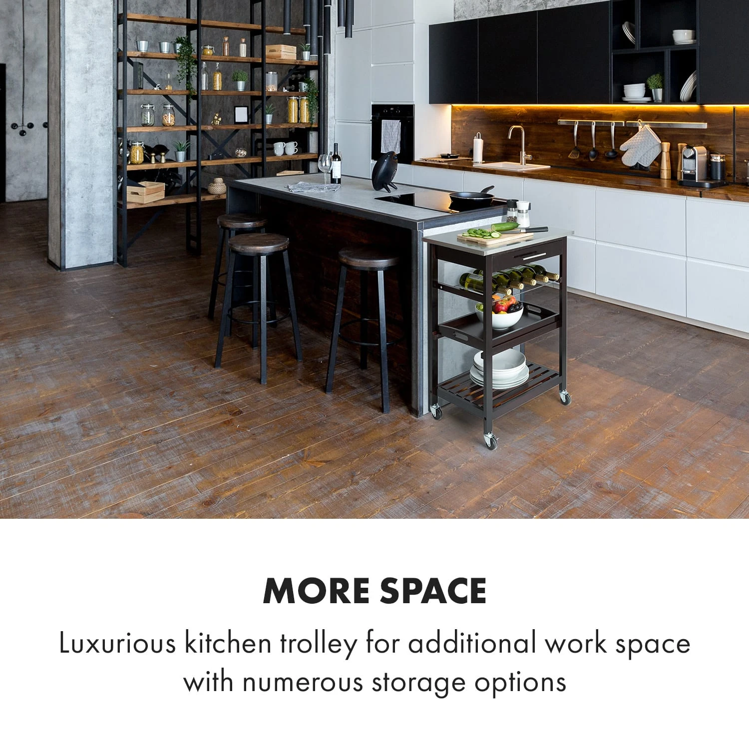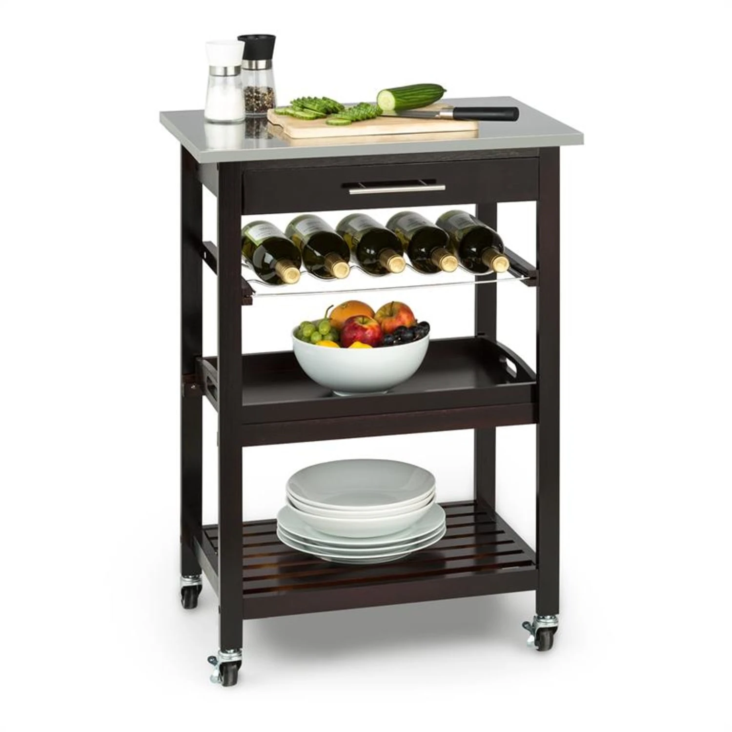 Edel und hochwertig: Der Klarstein Vermont Küchenwagen ist dein luxuriöser und servierfreudiger Küchenhelfer aus lasiertem Holz mit einem Top aus gebürstetem Edelstahl.